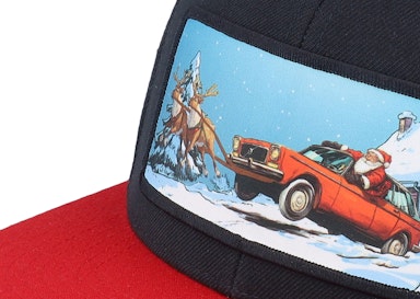 Santa Claus Car Sleigh Patch Black/Red Snapback - Ho-Ho-Hats
