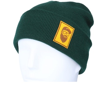 Cap Man Patch Bottle Green Beanie - Bearded Man