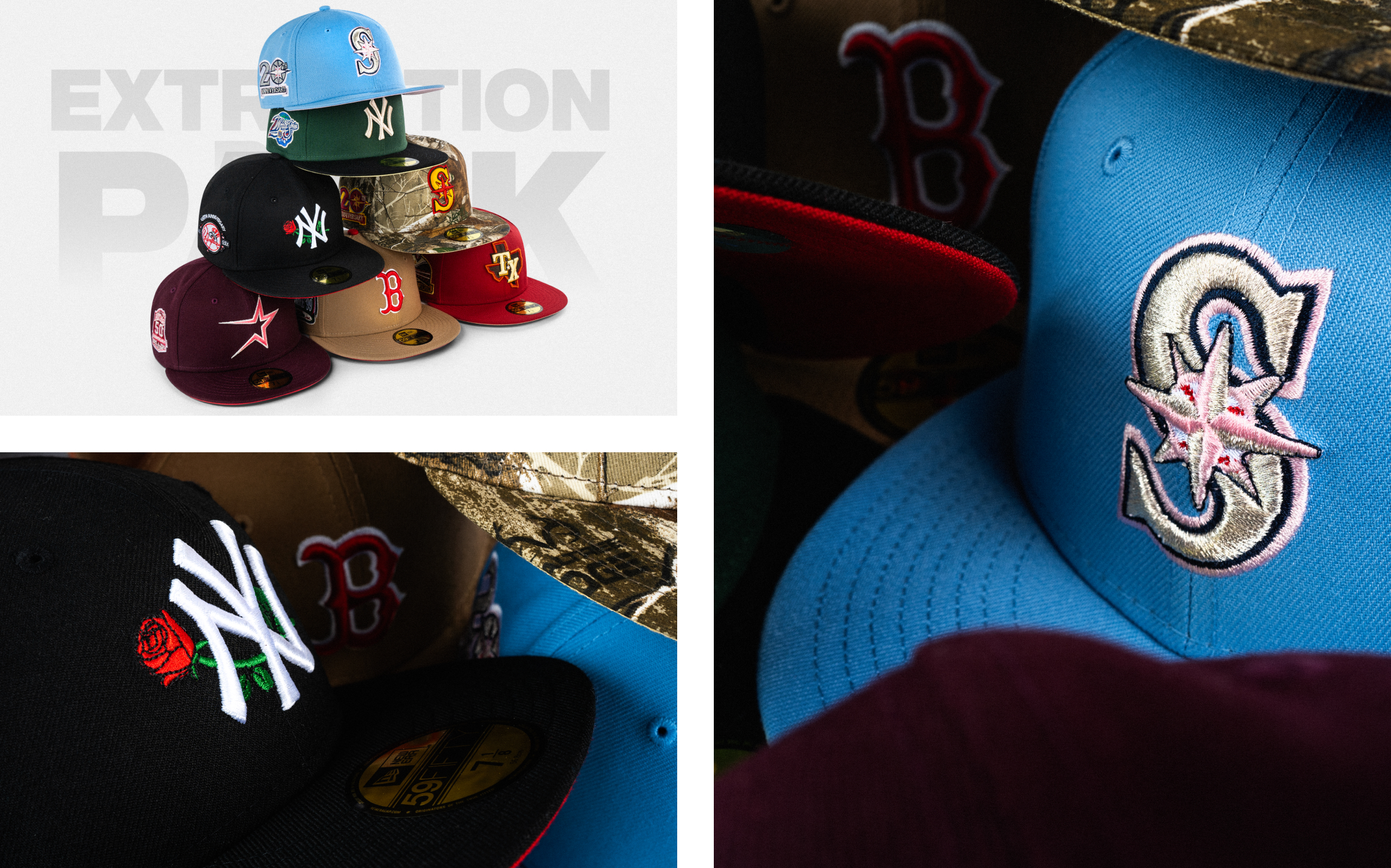 Unleash your style with the Extraction Pack! 💥 A diverse mix of 8 colorful caps, each one a unique find. From bold to subtle, there's a cap for every adventure. Grab yours today and level up your look! 🧢
