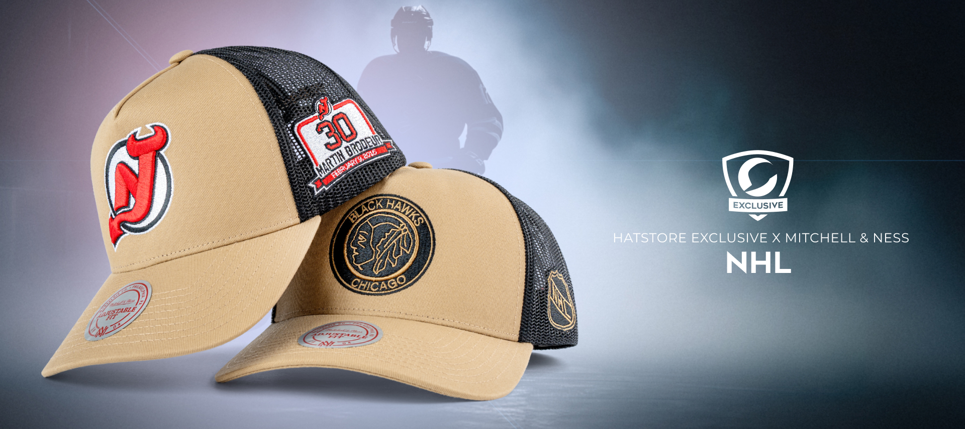 Hatstore Exclusive x New Jersey Devils Archaeo Tan/Black Trucker - Mitchell & Ness