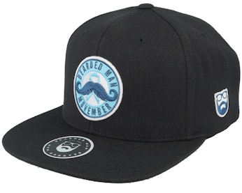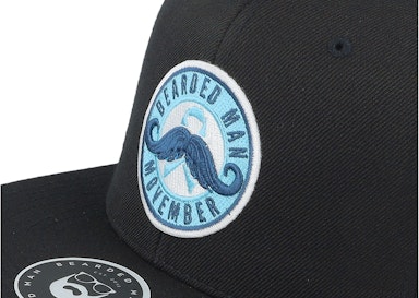 Movember Ribbon Moustache Patch Black Snapback - Bearded Man