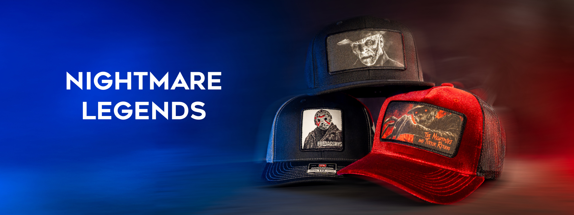 Check out our Nightmare Legends collection with iconic horror designs on caps in a variety of shapes and styles.