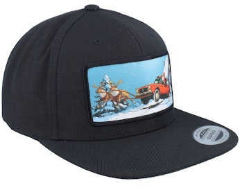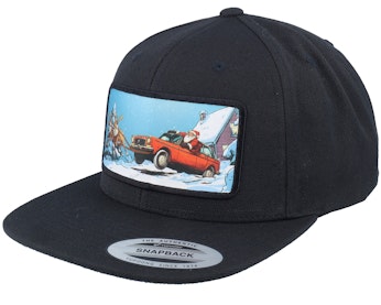 Santa Claus Car Sleigh Patch Black Snapback - Ho-Ho-Hats