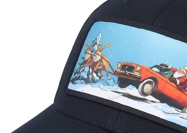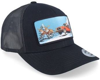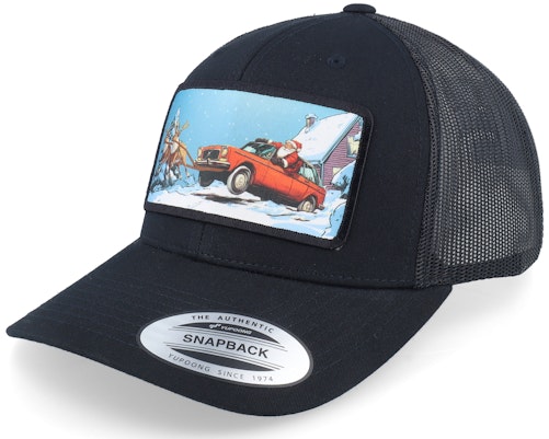 Santa Claus Car Sleigh Patch Black Trucker - Ho-Ho-Hats