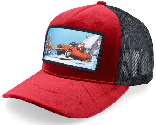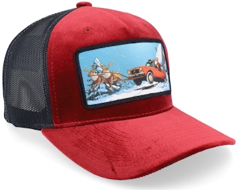 Santa Claus Car Sleigh Patch Velvet Red/Black - Ho-Ho-Hats
