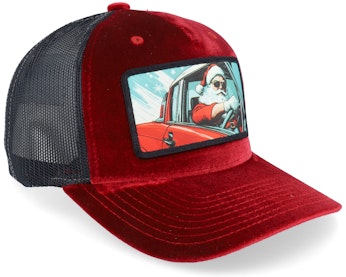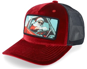 Santa Claus Going For A Ride Velvet Red/Black Trucker - Ho-Ho-Hats